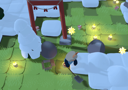 Take a deep breath, relax, and enjoy a peaceful moment as you shovel away the snow around your small shrine. Watch as spring slowly returns to your tiny island, one gentle action at a time.